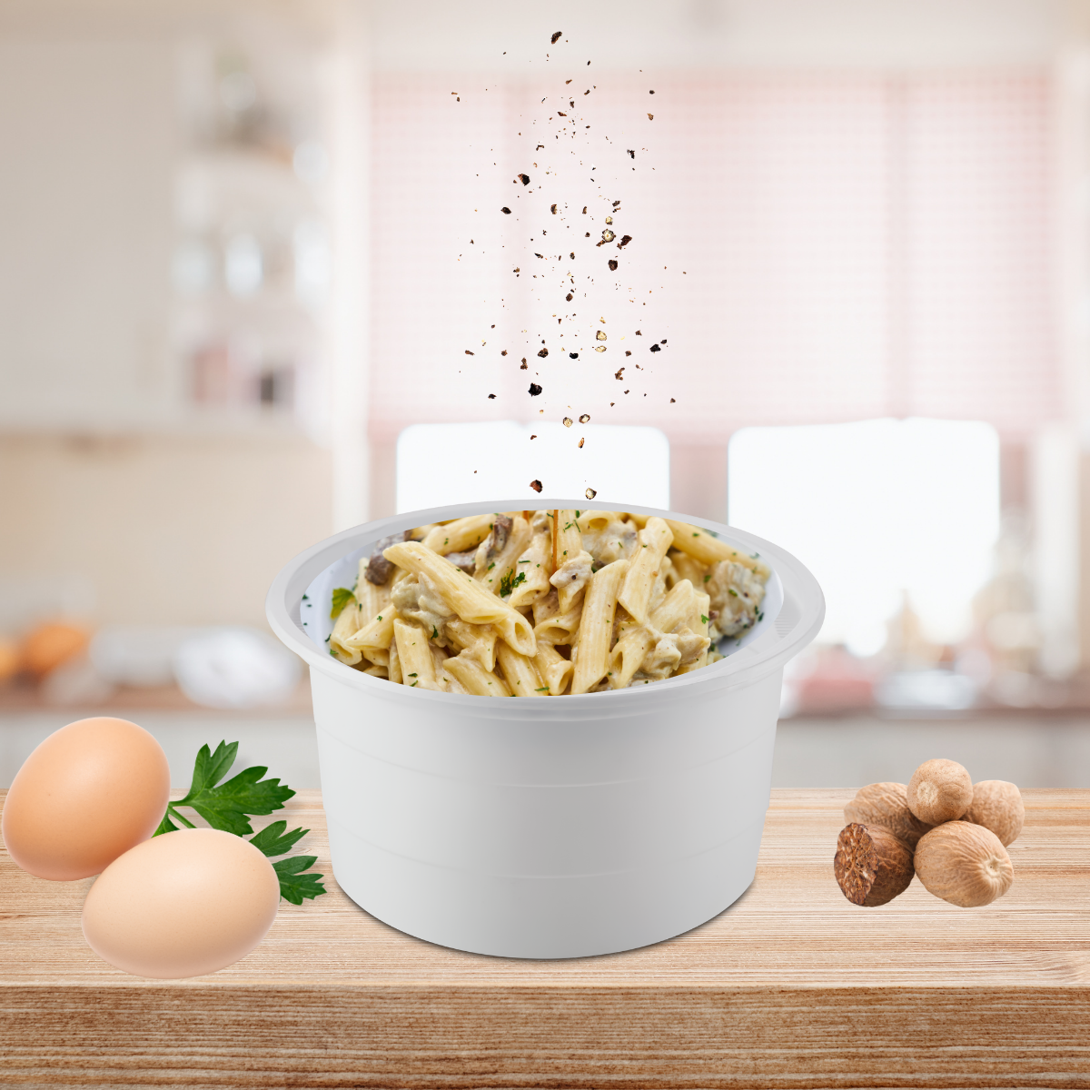 Ez a 750 ml Gulyástál fehér PP műanyagból tökéletes megoldás elviteles és házhoz szállított ételek csomagolására. PP (polipropilén) anyagból készült, amely tartós és hőálló. Mikrózható, így az étel könnyen újramelegíthető benne.
