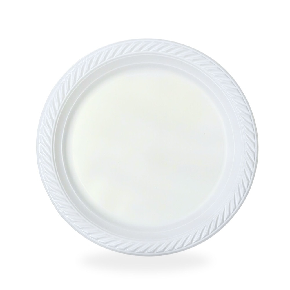 A polipropilén (PP) anyagból készült műanyag tányér biztonságos élelmiszerrel való érintkezéshez, miközben ellenáll a nedvességnek és a hőmérséklet-ingadozásnak. Letisztult fehér színe elegáns megjelenést biztosít, és bármilyen rendezvényhez vagy éttermi tálaláshoz illeszkedik.